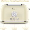 Toaster 2 Slice Retro Toaster Stainless Steel With 6 Bread Shade Settings And Bagel Cancel Defrost Reheat Function, Cute Bread Toaster With Extra Wide Slot And Removable Crumb Tray