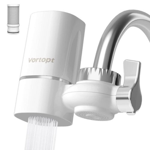 Vortopt Faucet Water Filter For Sink – NSF Certified Water Purifier For Faucet, 400 Gallons Faucet Mount Tap Water Filtration System For Kitchen, Bathroom, Reduces Lead, Chlorine, Bad Taste, T1